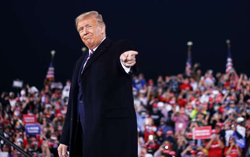 Donald Trump trong cuộc vận động tranh cử tổng thống Mỹ tại sân bay Capital Region International, Lansing, Michigan, Hoa Kỳ, ngày 27/10/2020. REUTERS - JONATHAN ERNST |